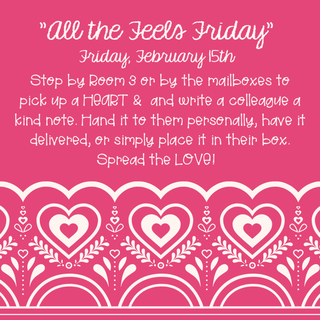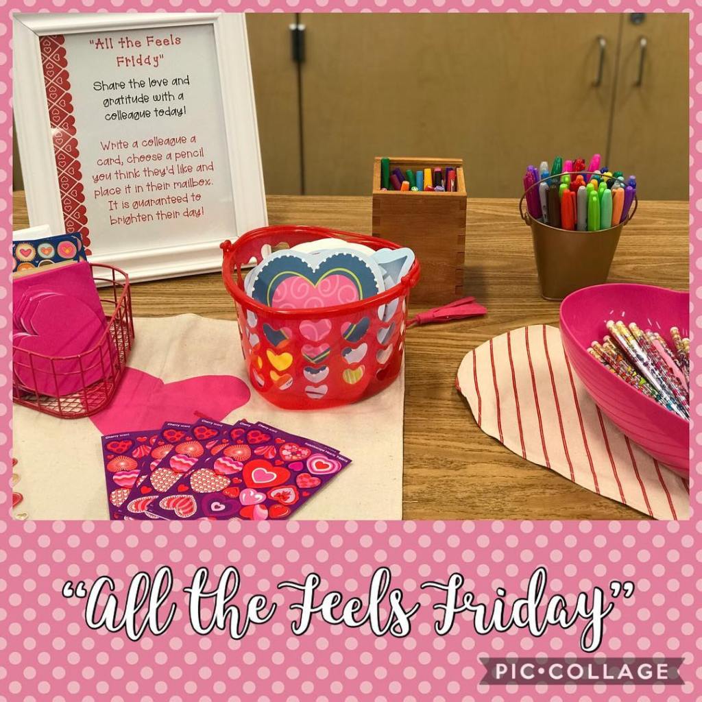 I’ve been doing “Fab Fridays in February” for a few years now and there are always smiles and appreciation from our team. It’s such a great way to start a Friday morning. By no means did I come up with all the ideas on my own. I’ve been inspired by so many others’ ideas that it has allowed me to change it up a little bit every year.
